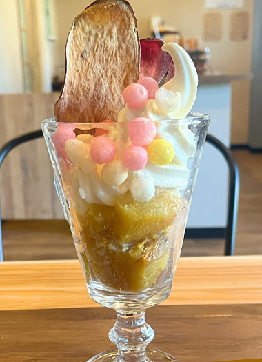 おいもパイスティックとか、大学芋にホイップとか、